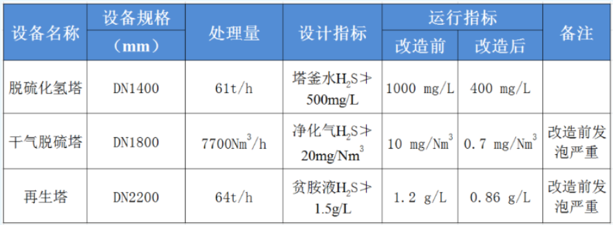 胺液是一種在濕法脫硫過程中經(jīng)常用到的溶液。由于其具有極易發(fā)泡的性質(zhì),干氣脫硫塔和再生塔在運行過程中都存在溶劑發(fā)泡淹塔的情況。且干氣脫硫塔較為明顯,出現(xiàn)全塔壓差增大,凈化干氣帶液嚴重的現(xiàn)象。在裝置整體未達到設(shè)計負荷的情況下,再生塔存在塔頂酸性氣產(chǎn)量較設(shè)計量大帶液嚴重的情況。