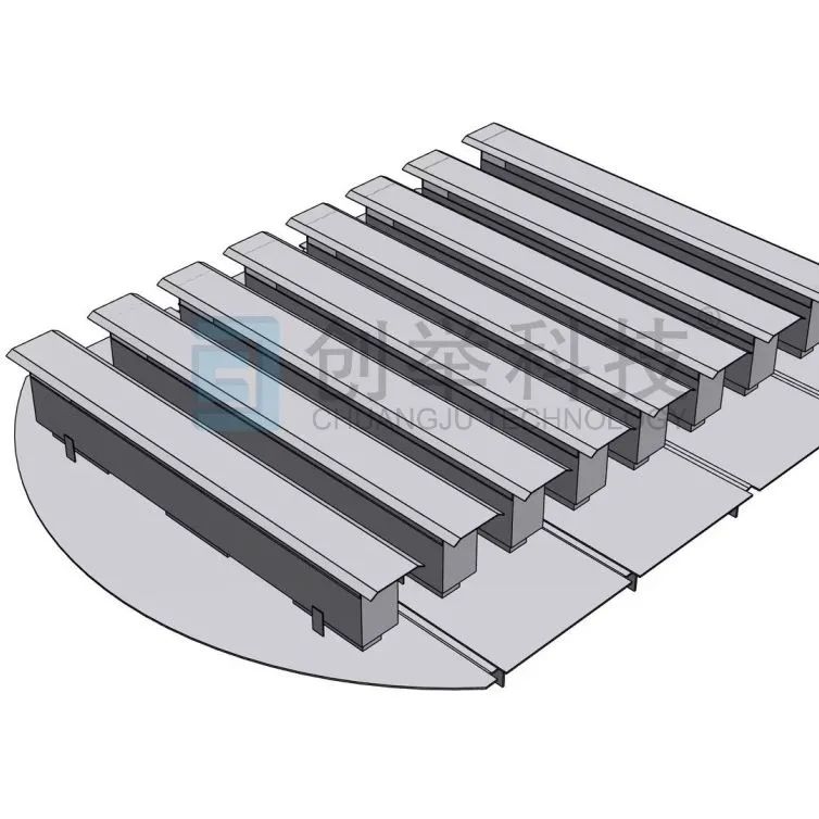 CJMP系列(膜噴射系列塔板)是在新型 垂直篩板 的基礎上開發的專利產品,該塔板起初是為解決塔板抗堵問題而開發,后又擴展到低阻力降吸收物系以及取熱型塔板等。