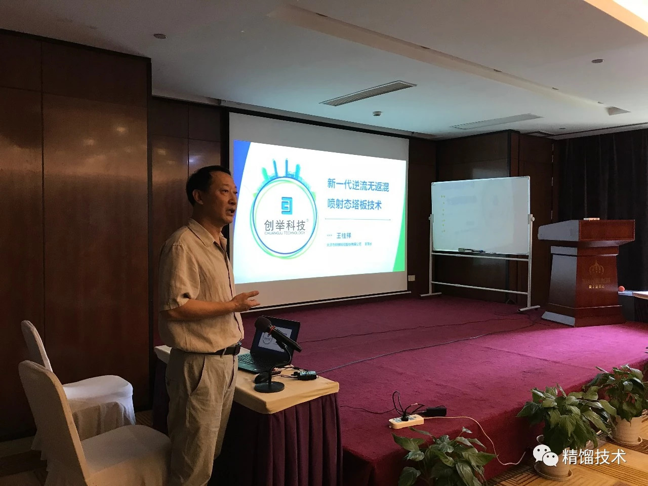 近日,天津市創(chuàng)舉科技股份有限公司董事長王柱祥先生應(yīng)邀出席2018精餾設(shè)計優(yōu)化、故障診斷與擴產(chǎn)增效研討班,并針對創(chuàng)舉的新一代逆流無返混噴射態(tài)塔板技術(shù)給學(xué)員帶來了精彩的技術(shù)分享課。
